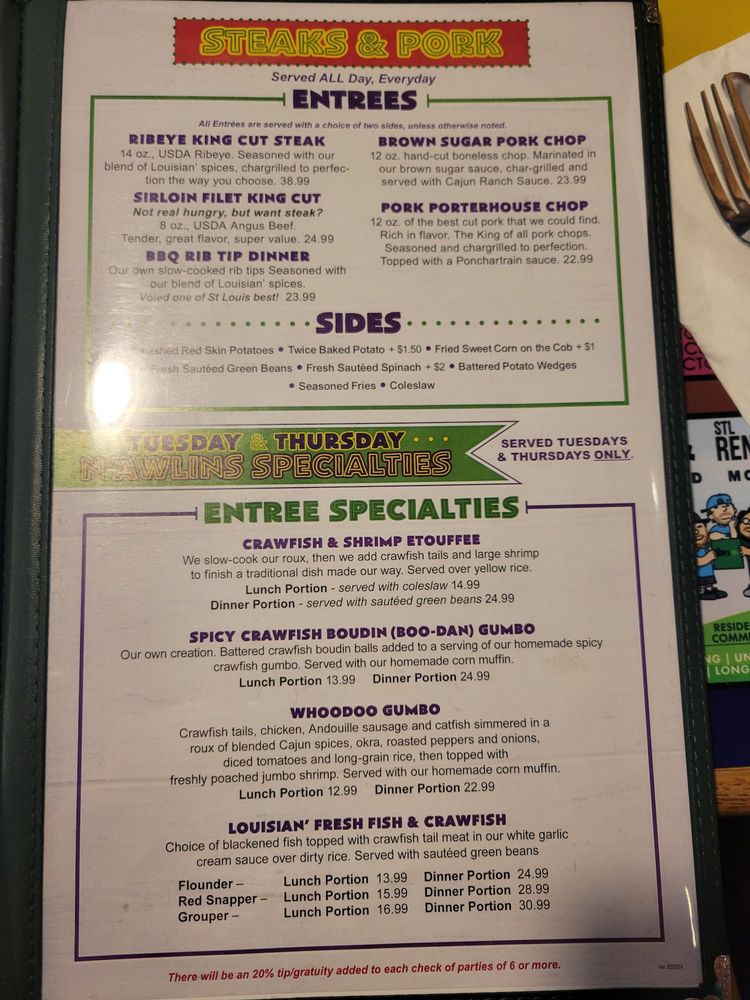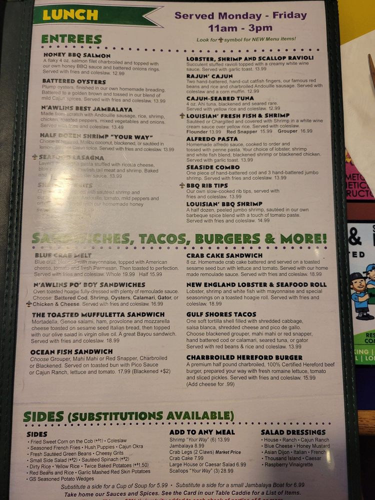 a lil bit o the bayou. featuring our homemade jambalaya, andouille sausage, a homemade crab cake, red beans & rice, and cole slaw. just what youd expect in nawlins.
