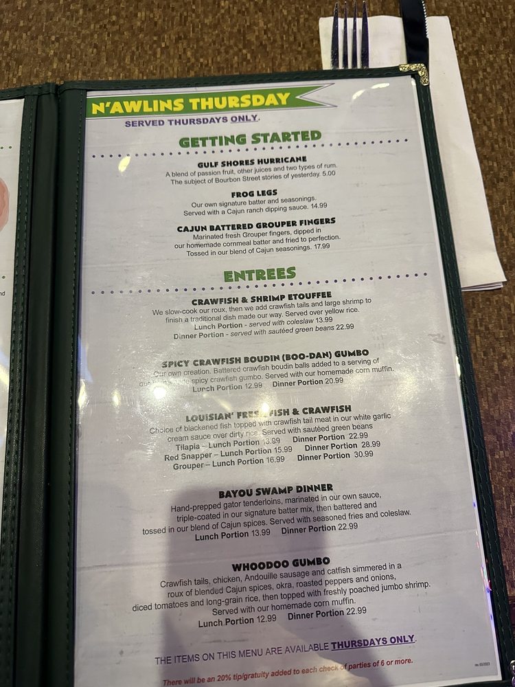 choose from any of the following preparations. original hand-battered, scampi, char-grilled, sauteed (garlic butter or cajun spice), skillet blackened (2 sides).